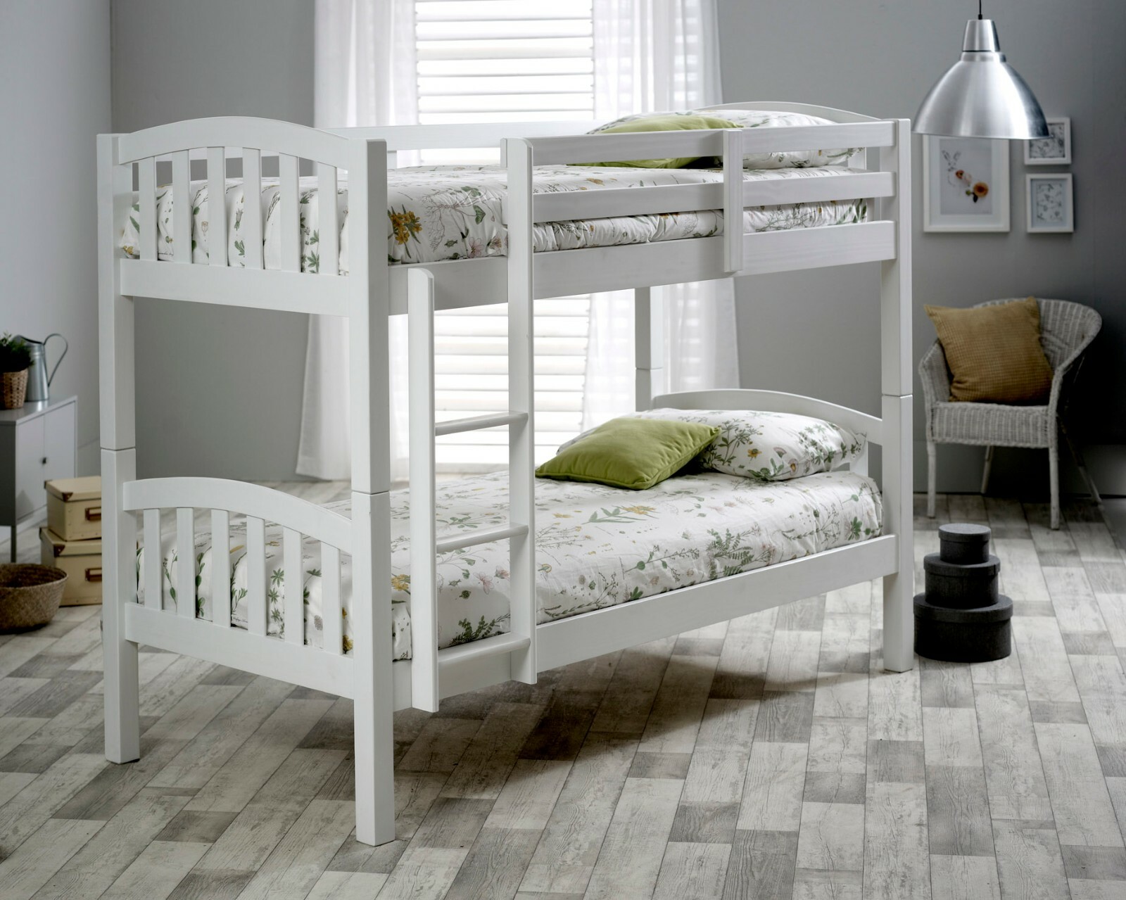 Mayflower Solid Wood White Bunk Bed 3ft Single Bed With Mattresses Bedroom