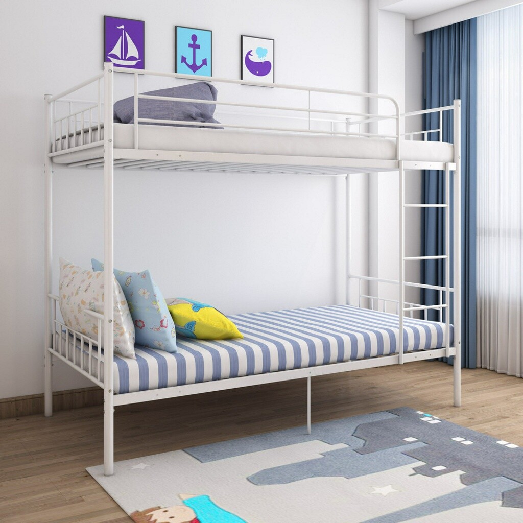 White 3FT Bunk Beds Frame Single Metal TWINS 2 Beds with Stairs Step Kids /Adult
