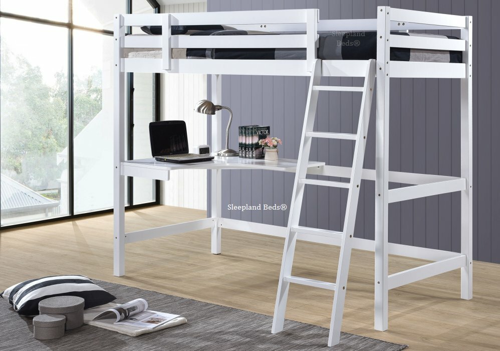 White Solid Wood Highsleeper Bed With Corner Desk – High Quality New Kids Beds
